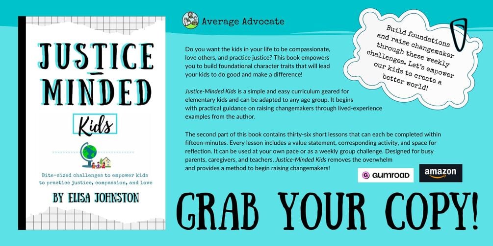 Justice-Minded Kids is a simple and easy curriculum geared for elementary kids and can be adapted to any age group. It begins with practical guidance on raising changemakers through lived-experience examples from the author.